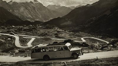 Von Pferdekutschen aus den 1920er-Jahren über Retro-Szenen aus den Sechzigern bis zu Elektro- und autonomen Postautos: Die Fotoausstellung in Bellinzona lässt das Publikum durch die Jahrzehnte der PostAuto-Geschichte reisen. Die 20 Sujets in Plakatgrösse sind als öffentliche Freilichtausstellung zu sehen – an einem für die Mobilität neuralgischen Ort: Der 2019 eröffnete Bushof beim Bahnhof Bellinzona dient den Fotos als Kulisse. Auf den meisten Bildern sind Tessiner Landschaften zu sehen – vom Wasserfall in Foroglio bis zu den Zypressen in Sant’Abbondio.