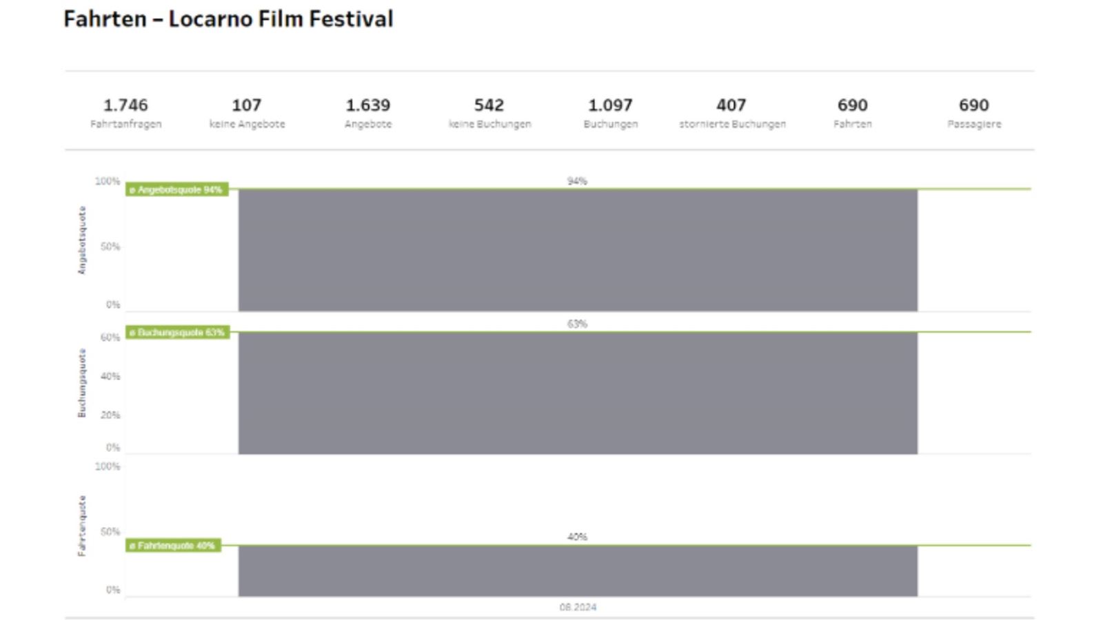 Chaque année, le Locarno Film Festival (LFF) gère manuellement les nombreux déplacements de ses convives. Au cours d’une réunion visant à définir les détails sur le renouvellement du contrat, l’option du transport à la demande a été présentée. Celle-ci a intéressé l’organisation du festival qui a reconnu son potentiel en matière de mobilité pour les personnes invitées à l’événement. Elle nous a donc demandé de trouver une solution pour automatiser la gestion des déplacements.